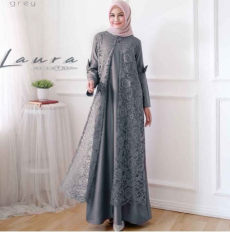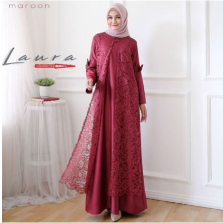 baju muslim wanita muslimah _gamis laura brukat dress _ukuran all size fit to L_murah berkualitas