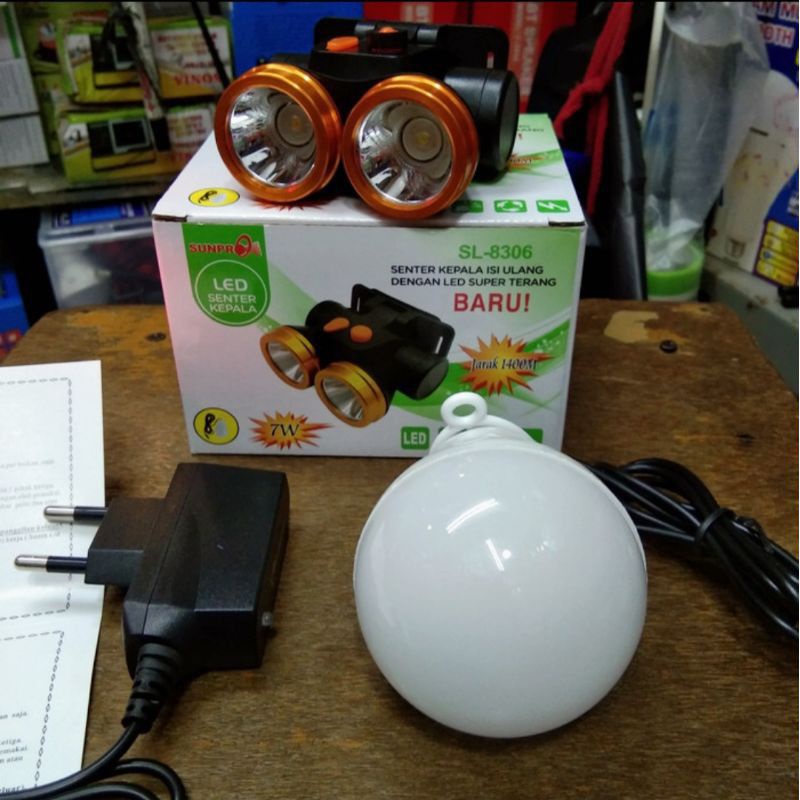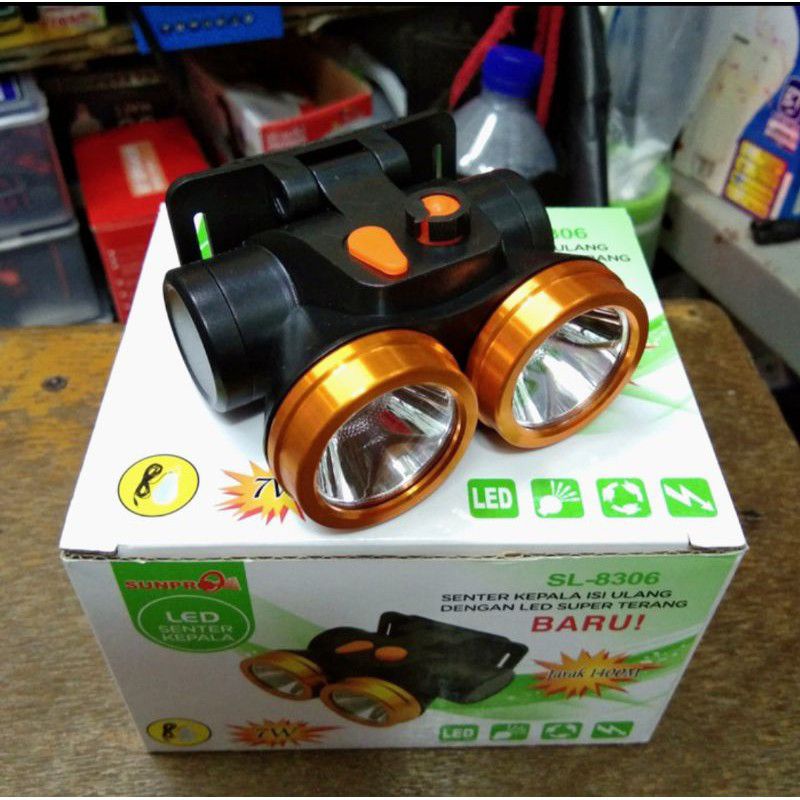 SENTER KEPALA LED SUNPRO SL-8306 JARAK 1400M CAHAYA PUTIH DAN KUNING
