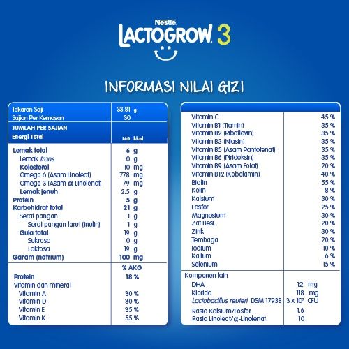 Nestle Lactogrow 3 Susu Pertumbuhan Rasa Madu 1-3 Tahun Box 1 kg