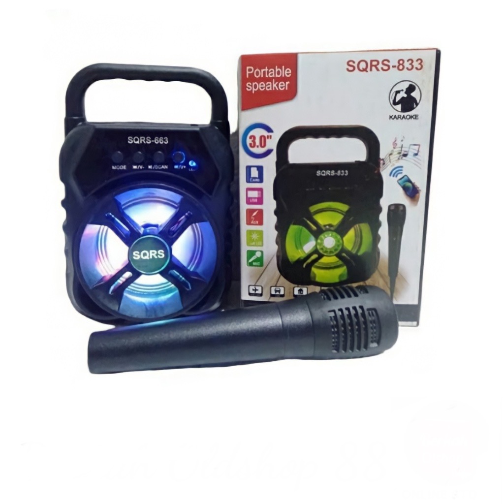 Speaker Bluetooth Sqrs 833 Bonus Mic/Salon Aktif Portable Radio Fm/Speaker Wireless Led