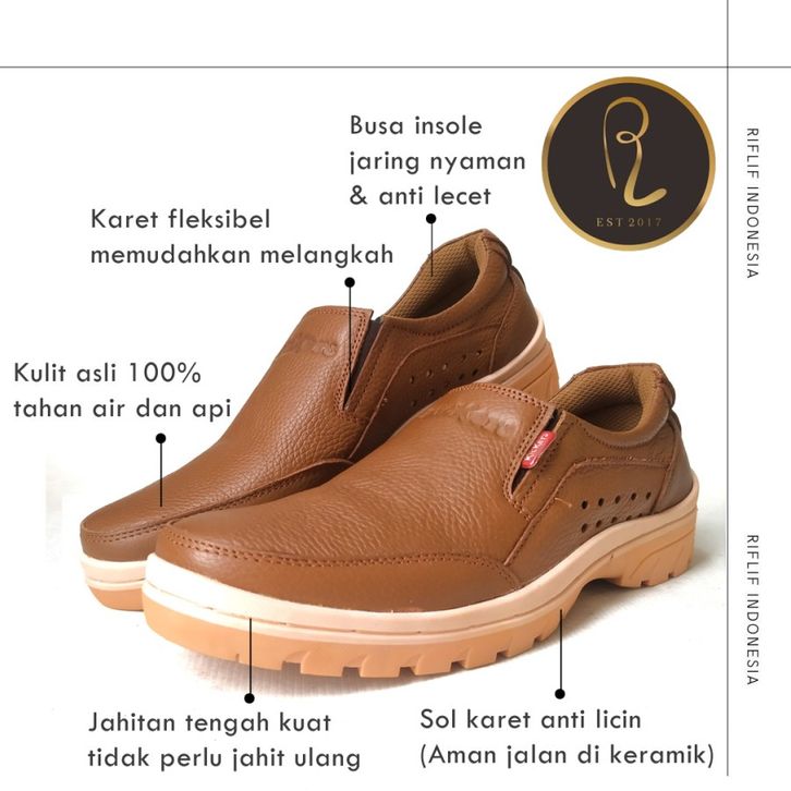 Sepatu Casual Kasual Pria Slip On Cowok Bahan Kulit Asli Harga Murah
