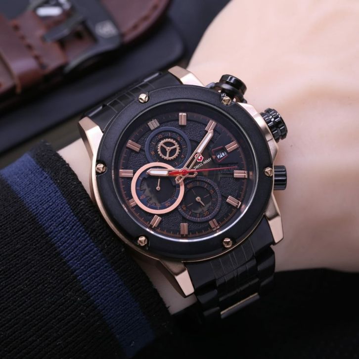 Jam Tangan Pria Swiss Army / Swiss Army Cowok Tanggal Aktif SA 1017 - Stainless Steel