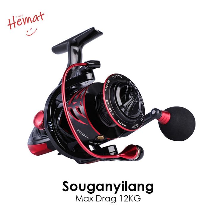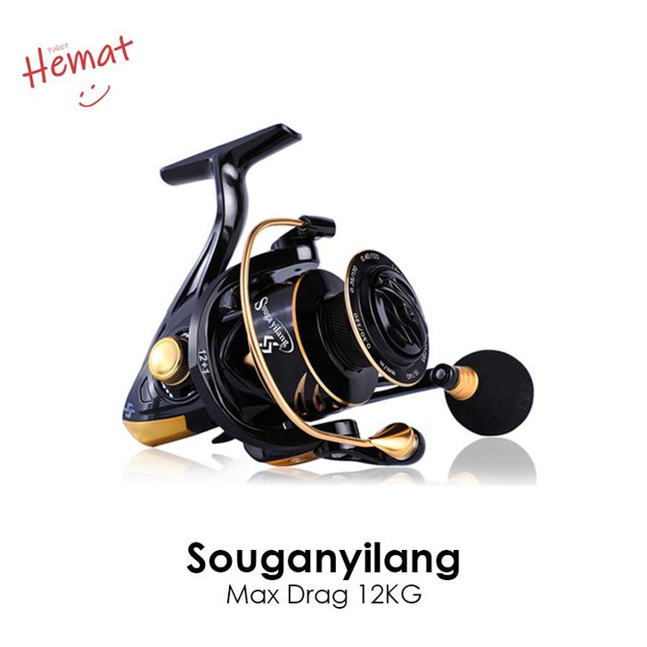 Souganyilang 12+1BB 5.2:1 Gear Ratio Ball Bearings Max Drag 12KG Metal Spool Power Fishing Reel 1000 4000 Series Rel Ril