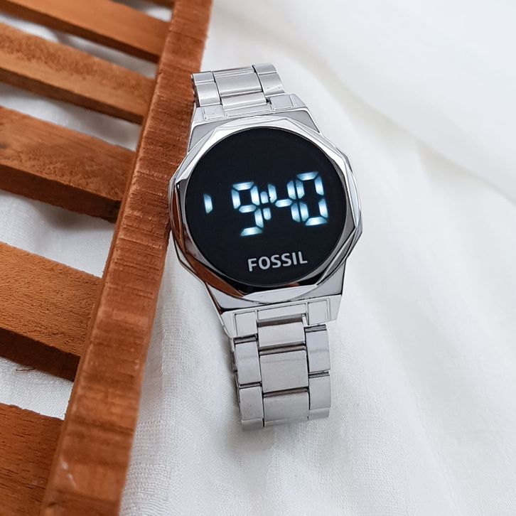 Jam Tangan Wanita Fossil / Fossil Cewek Digital Led 1020 - Stainless Steel