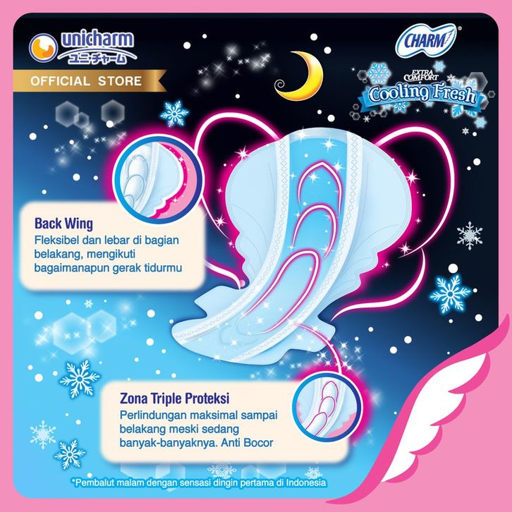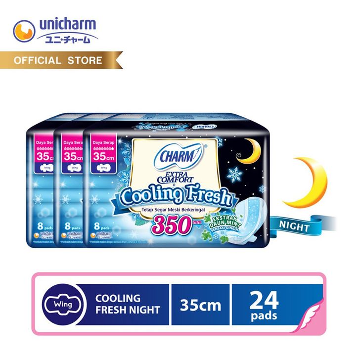 Charm Pembalut Cooling Fresh Night 35cm 8 pads - 3 Packs