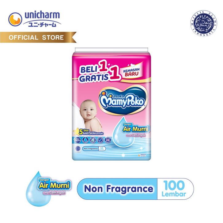 (Beli 1 Gratis 1) MamyPoko Wipes Tisu Basah Reguler 2 x 50 Non Perfume