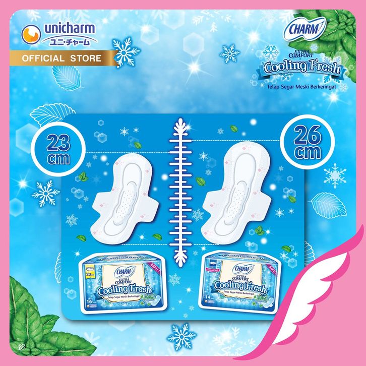 Charm Pembalut Cooling Fresh Wing Long 26cm 14 pads - 3 packs