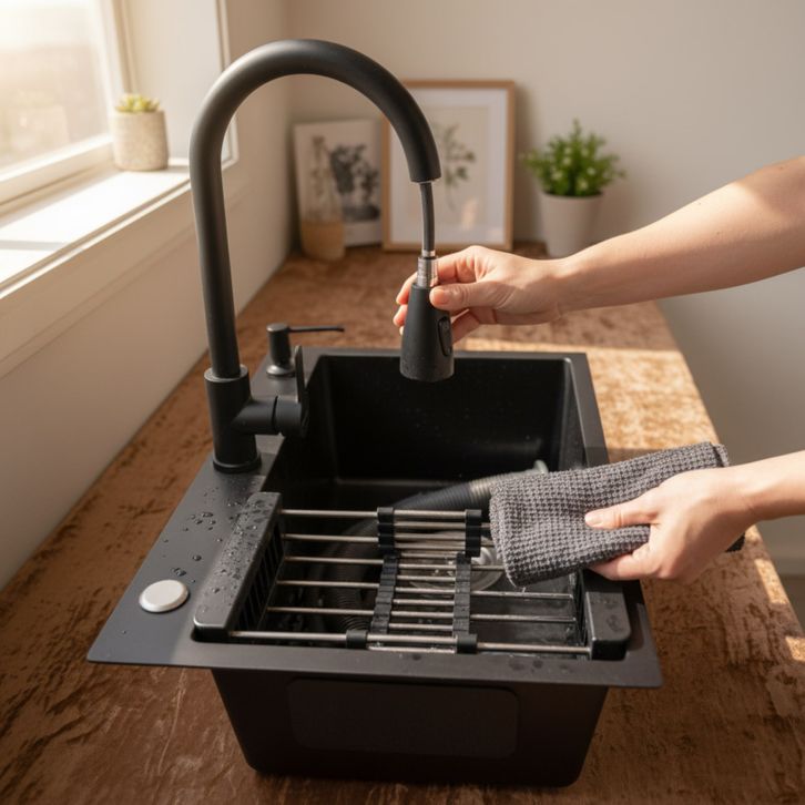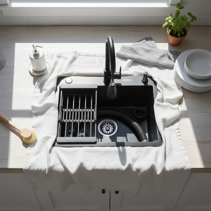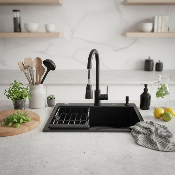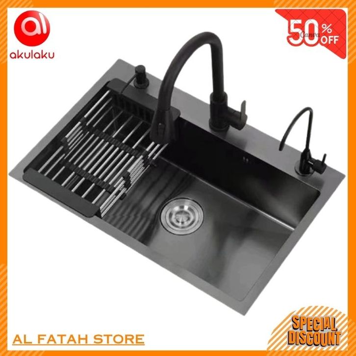 Paket Kitchen Sink LUNAR 5243 BLACK /Bak Cuci Piring Stainless 5243 HITAM