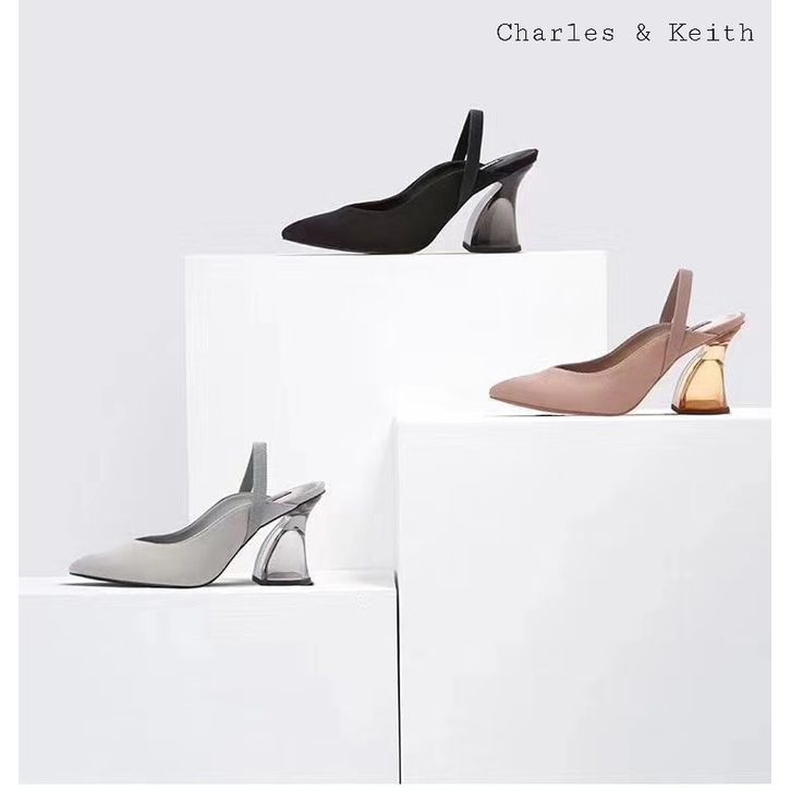 Charles & Keith C&K CnK Suede Transparent Heels Slingback 866