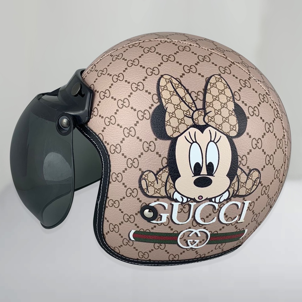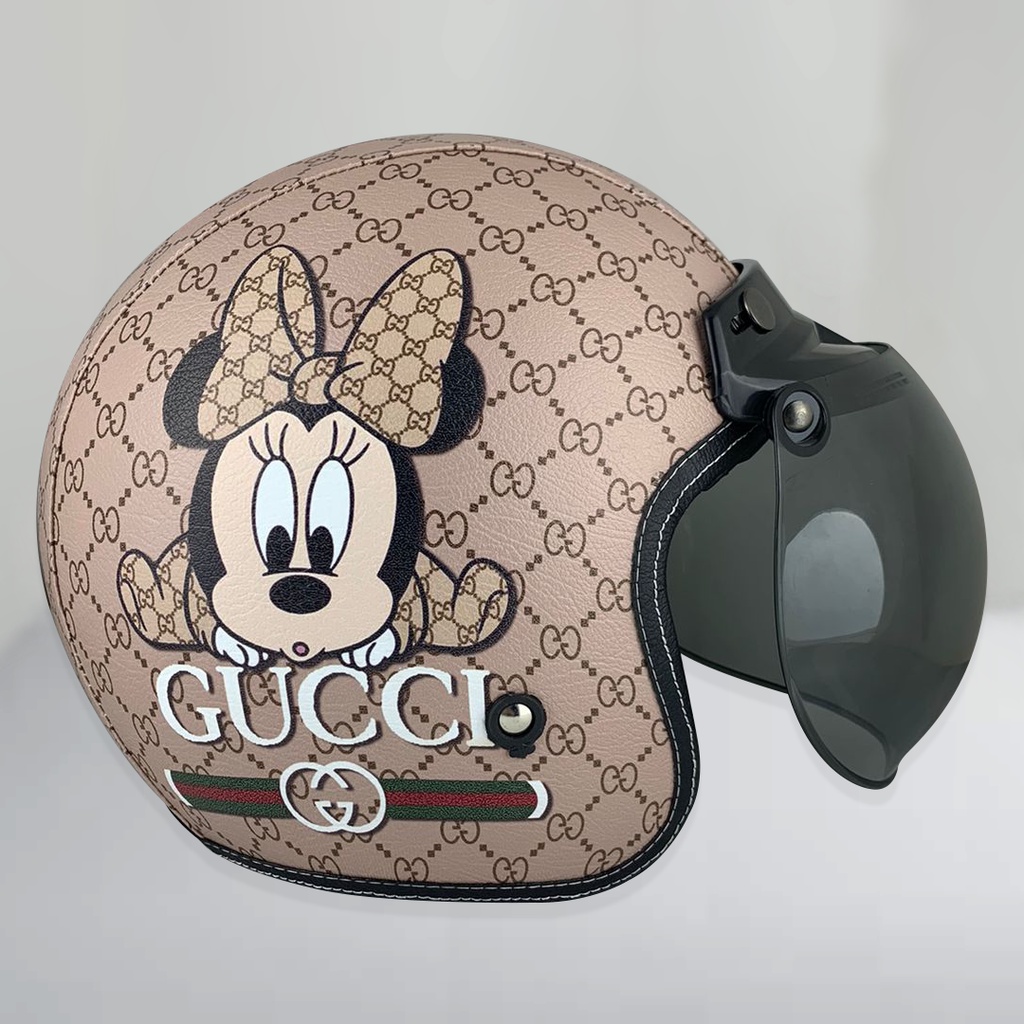 PROMO HELM RETRO BOGO KULIT GUCCI MINNIE MOUSE HITAM KACA BUBBLE HALFFACE