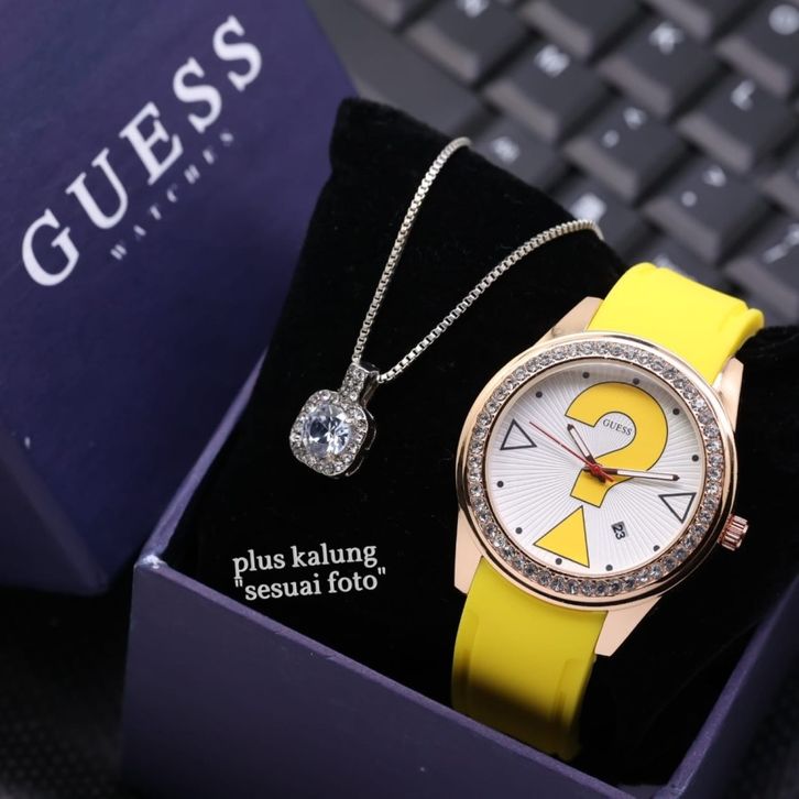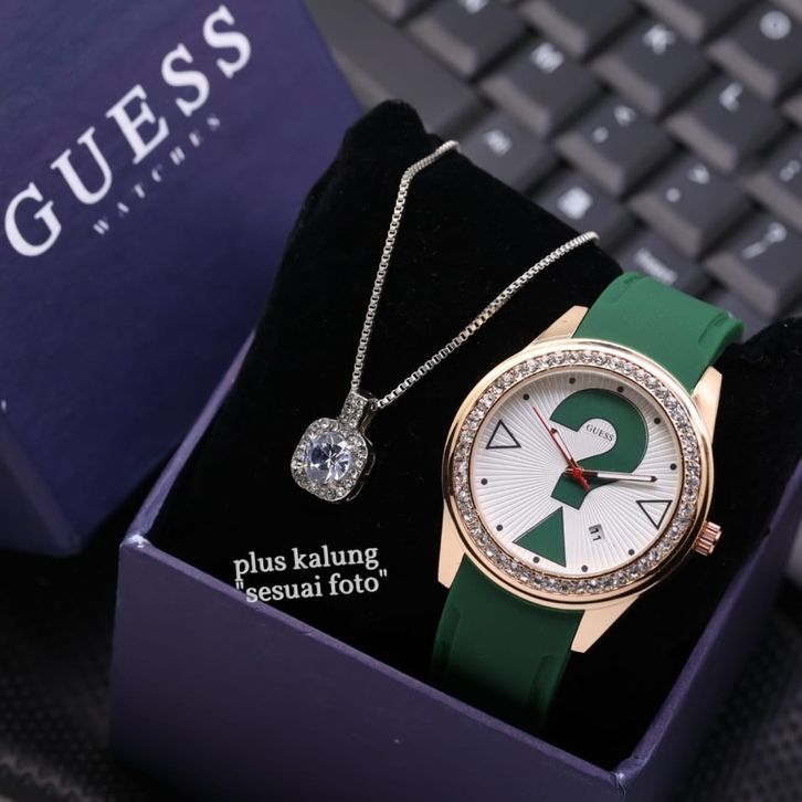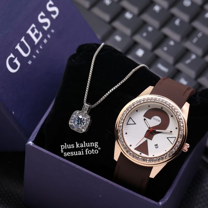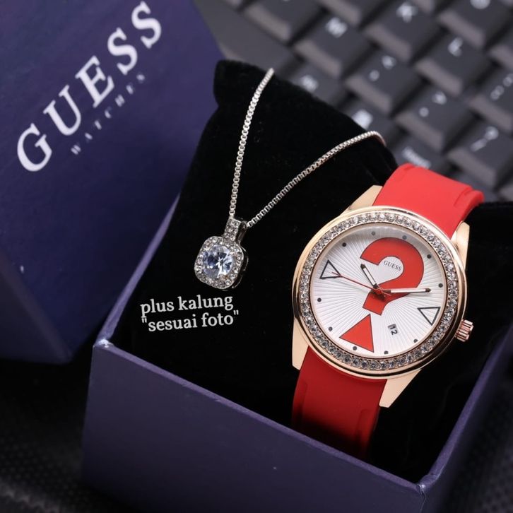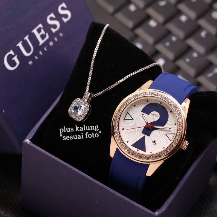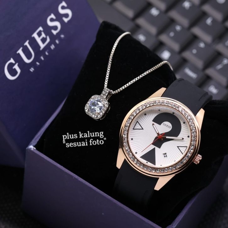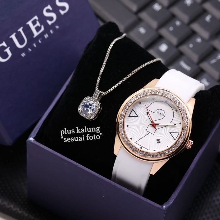 Jam tangan wanita guess karet plus kalung liontion free box promo