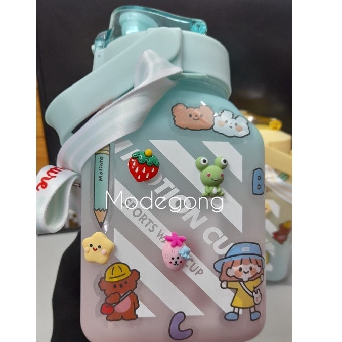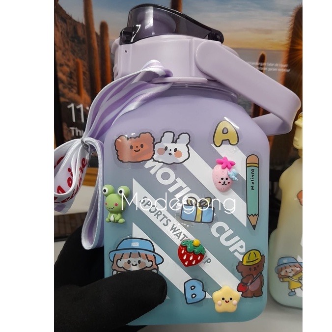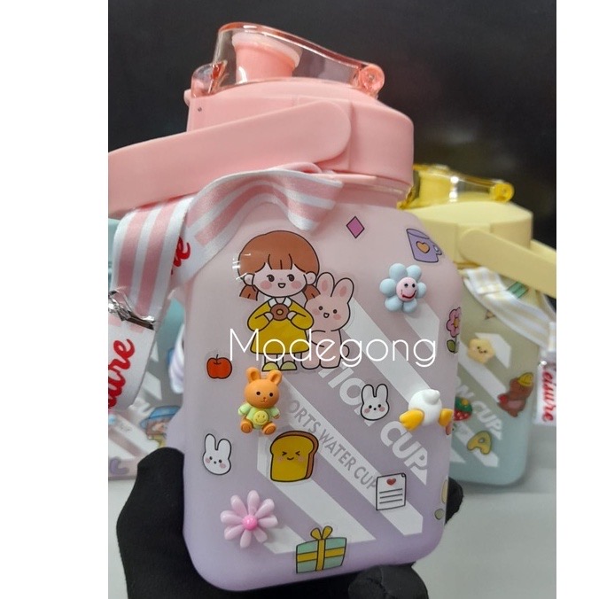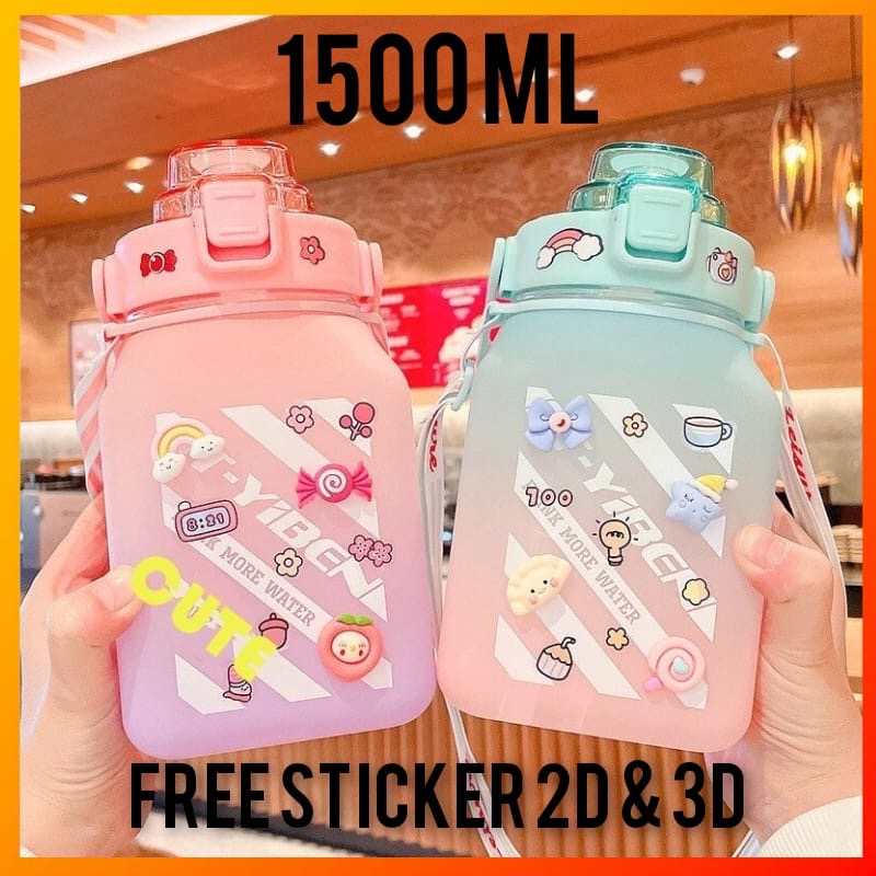 BOTOL MINUM ANAK GEMOY KOTAK 3D VIRAL MURAH WARNA GRADASI PASTEL 1.3 LITER 1300 ML 2D & 3D STICKER BOTOL MINUM ANAK TALI