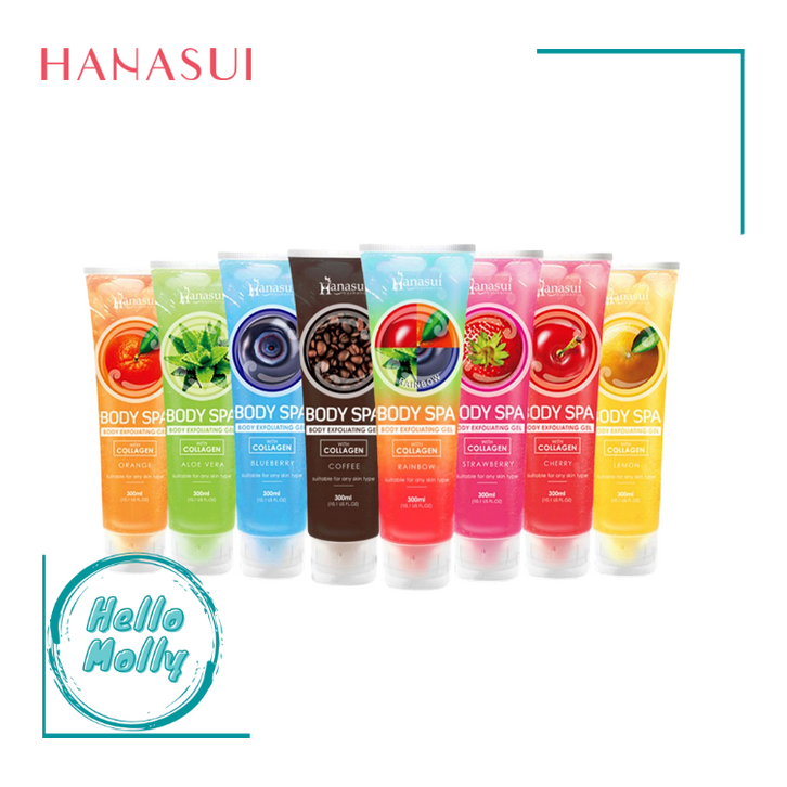 [BPOM] HANASUI Body Spa Exfoliating Gel Collagen Aloe Vera / Orange / Lemon / Strawberry /Blueberry/Rainbow/Cofffe 300ml