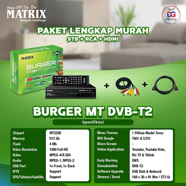 Matrix Apple Merah/Silver/Kuning Super HD - STB TV Digital Youtube,MeeCast,Apple Cast,IPTV,DVB-T2,DVB2IP,MITUBE,Tik-Tok,