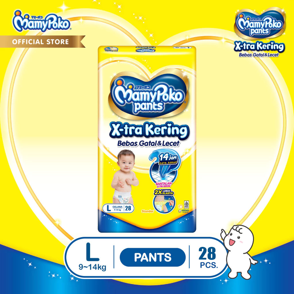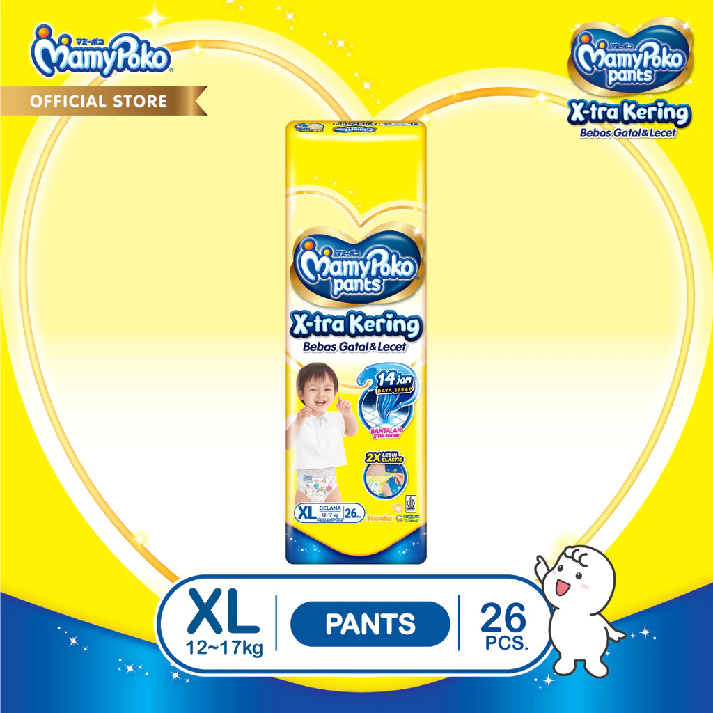 1 Ball Mamypoko pants standar X-tra Kering Celana NB-S44/ S38/M32/L28/XL26/XXL24 Popok Bayi
