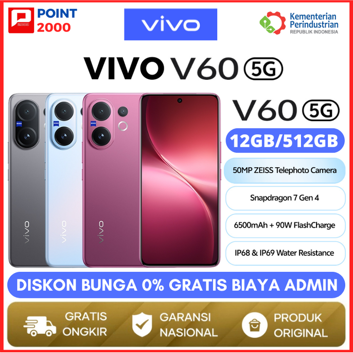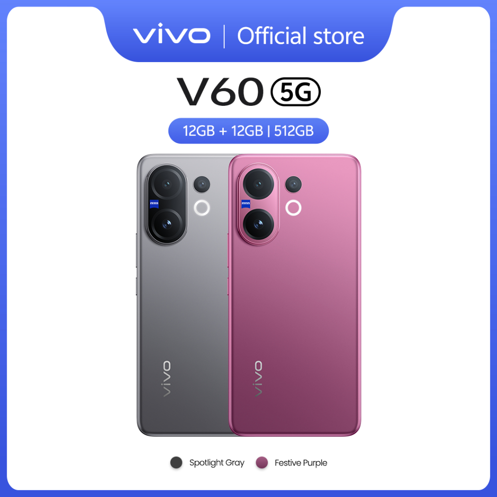 (Best Seller) Vivo V60 5G (12/256GB) (12/512GB) - Garansi Resmi 10x Zoom Telephoto, ZEISS Multifocal Potrait, Snapdragon