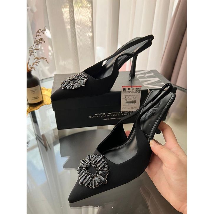 Sepatu Zara Wanita Slingback Heel 9Cm Import Shoes New/Sandal Zara Wanita High Heel/Shoes Zara Wanita Hak Tinggi
