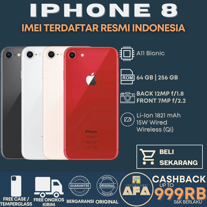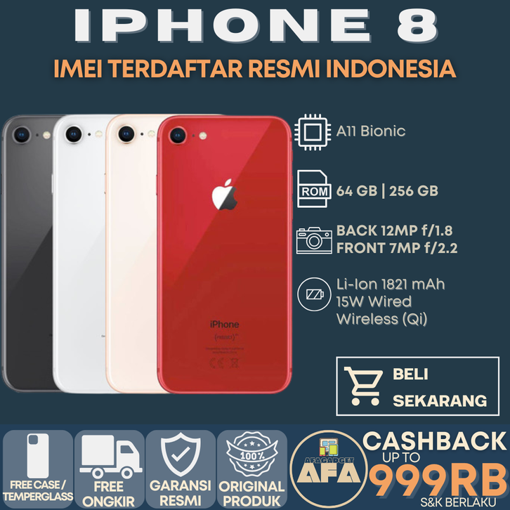 APPLE IPHONE 8 256GB 64GB FULLSET ORIGINAL GARANSI RESMI EX IBOX INTER BLACK SILVER ROSE RED