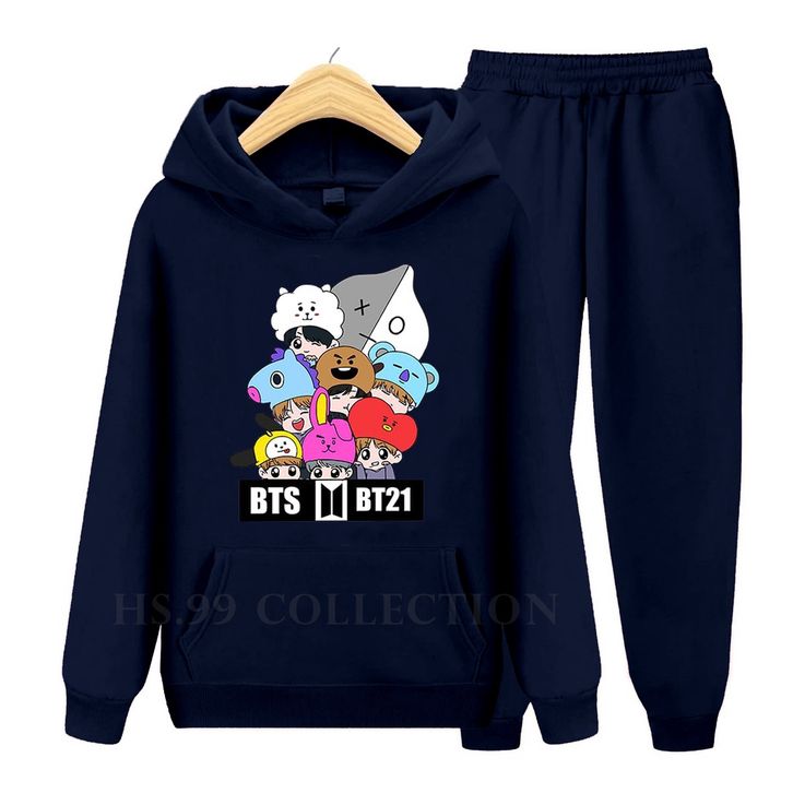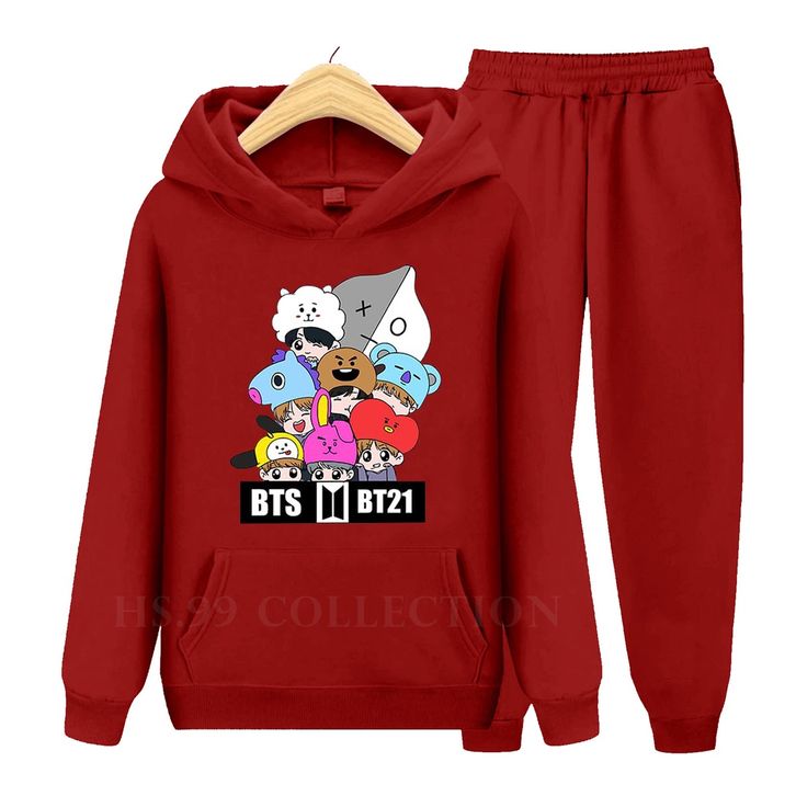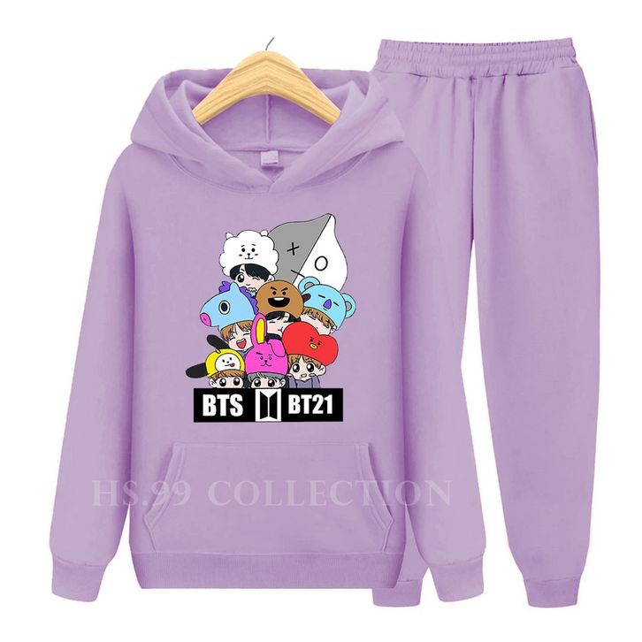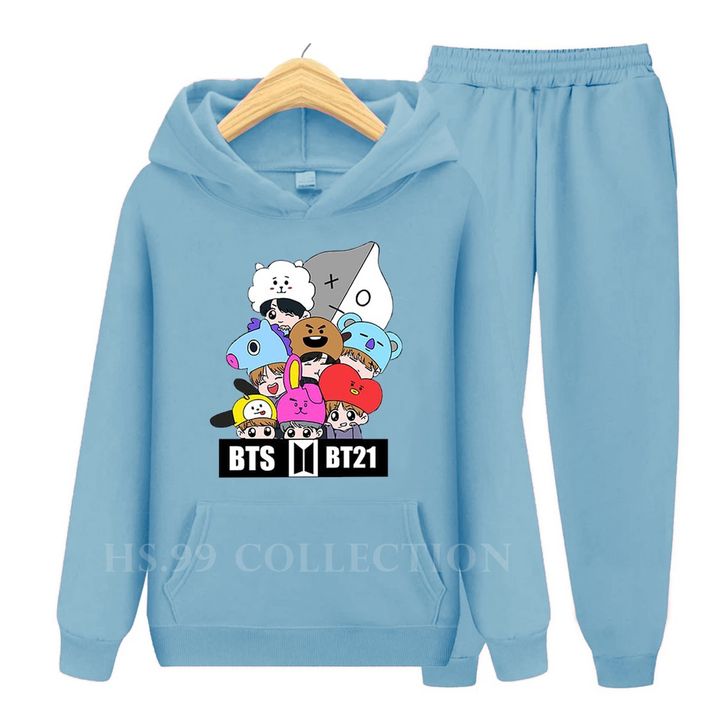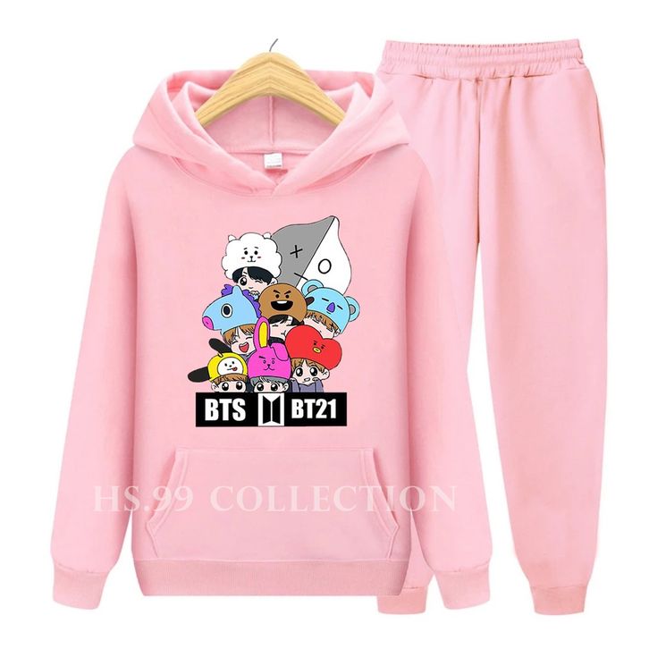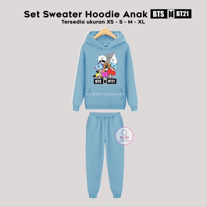 Setelan Anak Sweater Hoodie BT21 x BTS Anak Perempuan (S 5-10 thun, M 10 thun keatas) / Sweater Anak