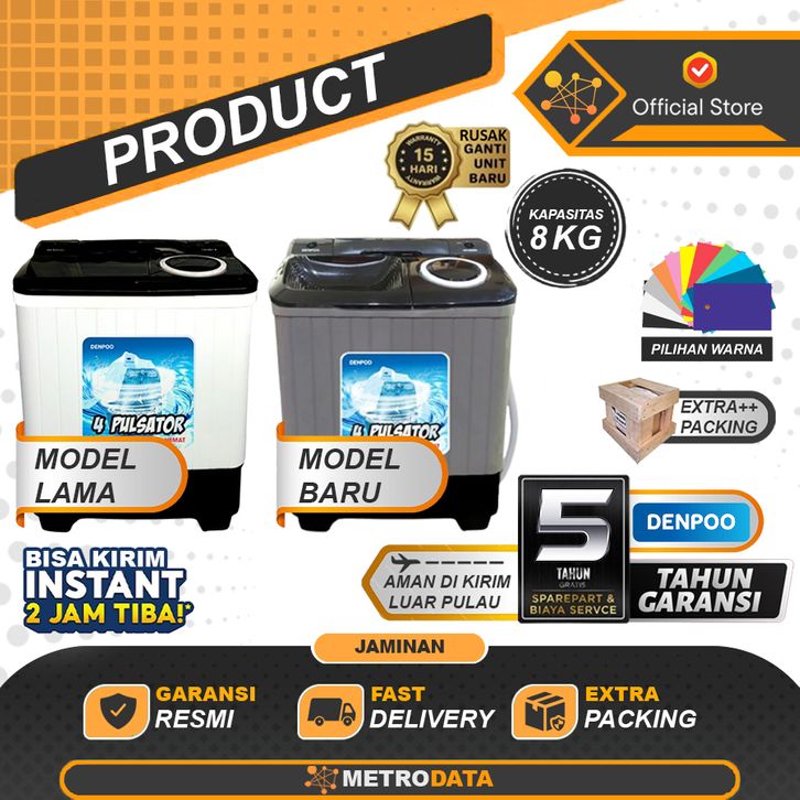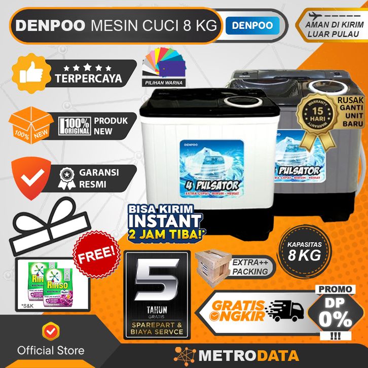 GRATIS ONGKIR TANPA BIAYA TAMBAHAN!!! DENPOO DW 8907 MESIN CUCI 2 TABUNG DENPOO 8KG 8 KG DW 8907B 828