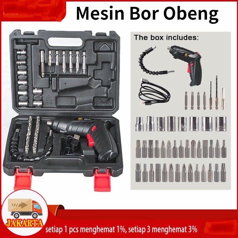 48PCS/SET Cordless Screwdriver 4.2 V Mesin Bor Obeng Cordless Screwdriver Toolkit Set Lengkap Baterai 4.2V Charger