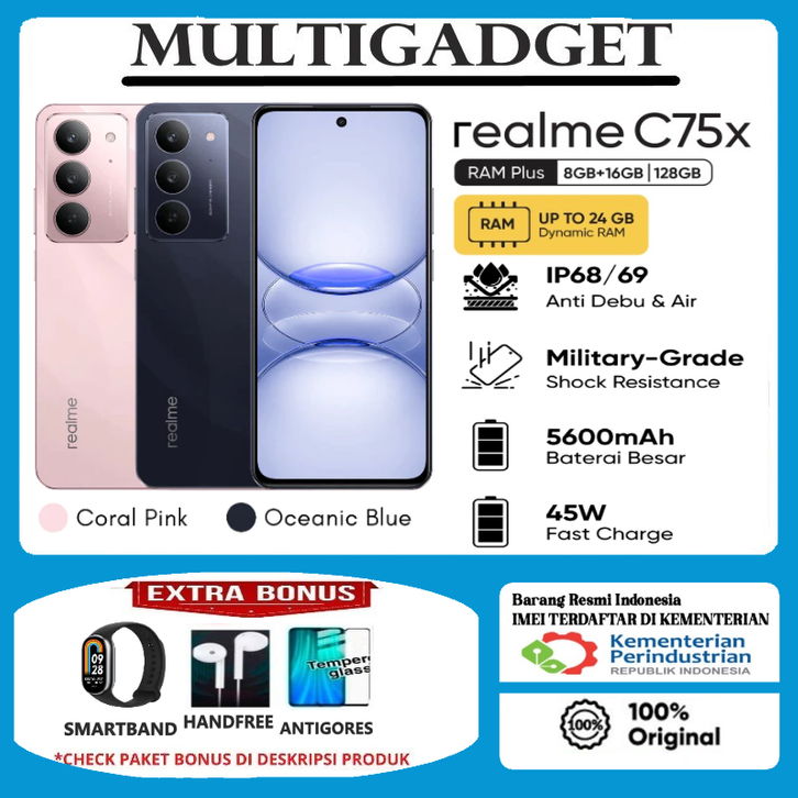 REALME C75x RAM 8/128GB IP68/69 Anti debu & Air GARANSI RESMI | REALME C75x 8gb/128gb
