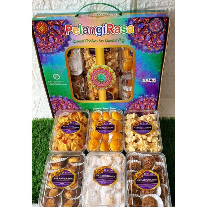 Paket kue kering Pelangi rasa toples kotak - Paketan kue isi 6 toples