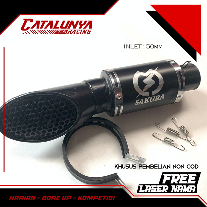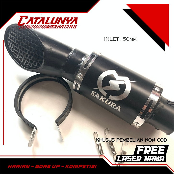Knalpot Racing Silincer Sakura Slash Black Doff Inlet 50 Mm Kenalpot Warna Hitam Dop 50mm Suara Bas Silincer Bracket Per