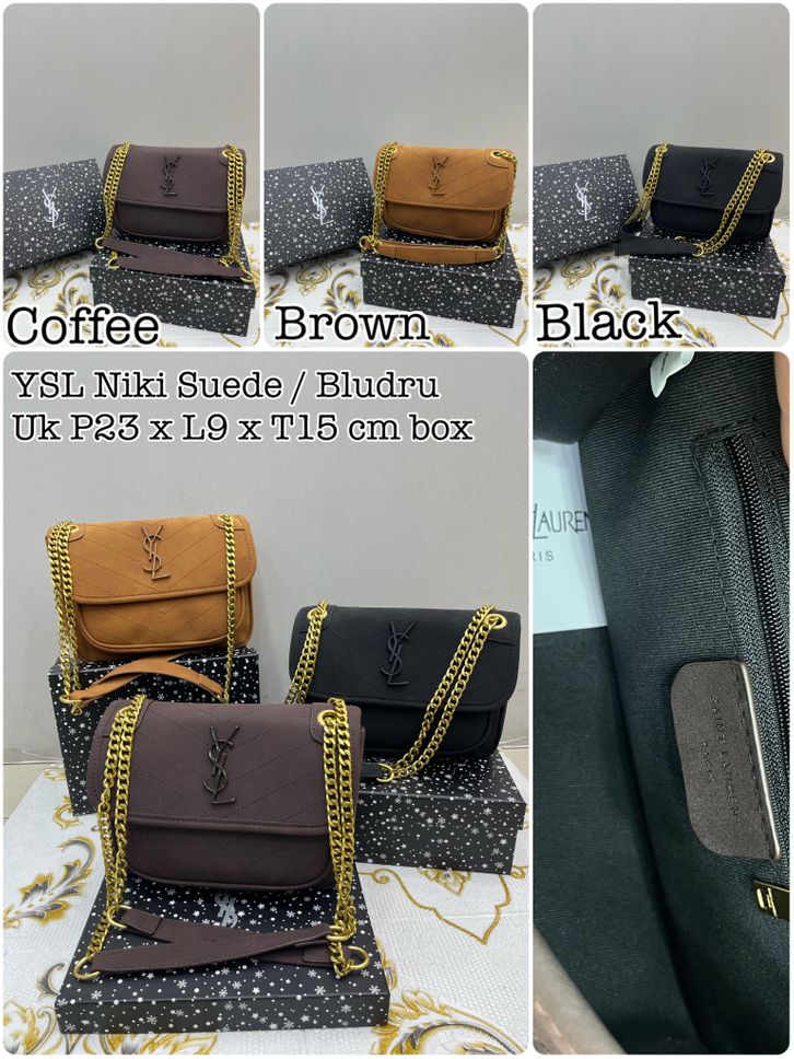 TAS YSL NIKI IN SUEDE PREMIUM/TAS WANITA YESLONG SHOULDERBAG 23CM/TAS BRANDED TERBARU