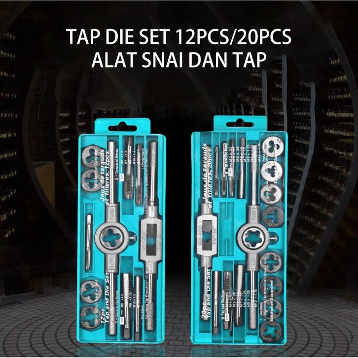 Tap Die Set 12pcs 20pcs Alat Snai dan Tap Ulir Dart Mur Baut Alat Senai 12pcs 20pcs Senei Die Senei