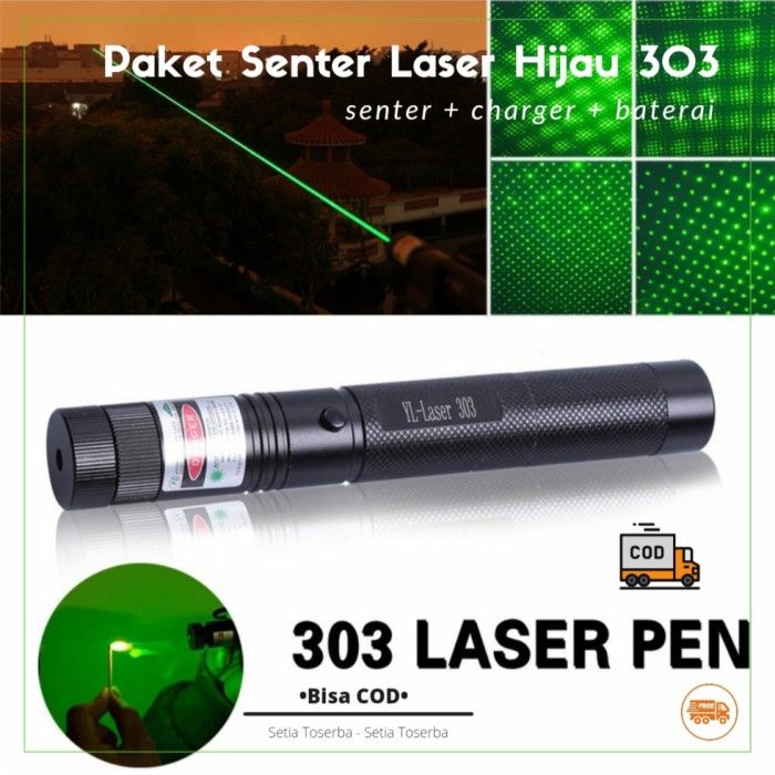 Laser Hijau Green Pointer Jarak Jauh 303 Baterai Charger Senter Laser