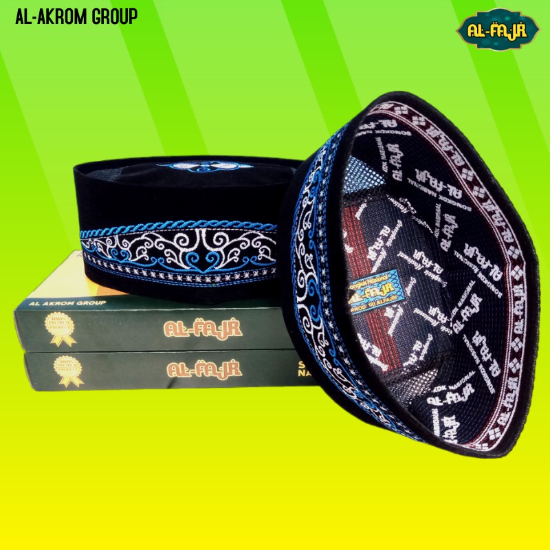 Peci Songkok Pria Kopiah Hitam Motif Bordir Batik Biru Murah untuk Anak dan Dewasa