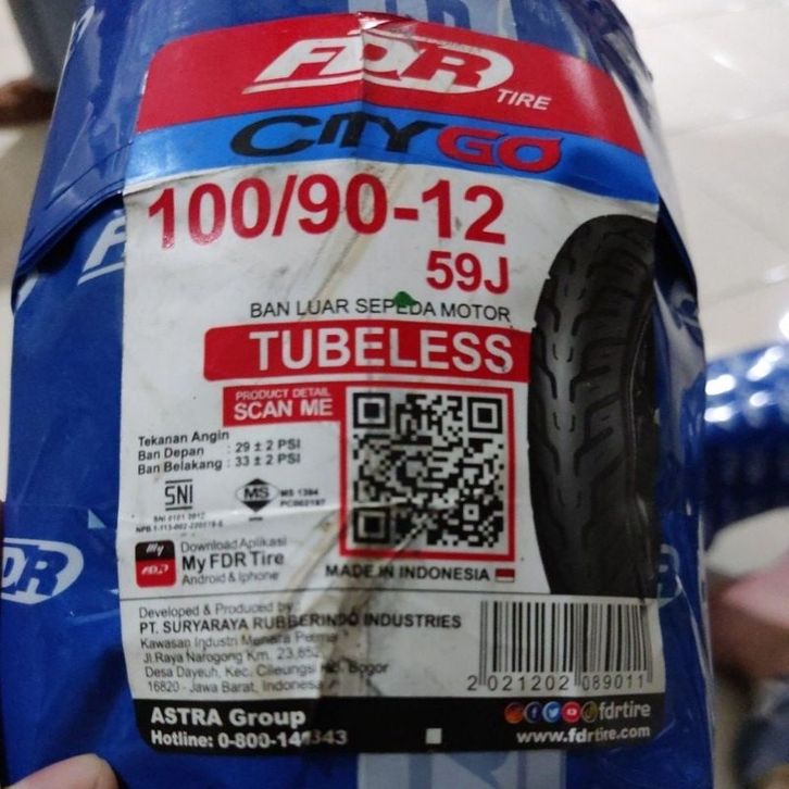 BAN LUAR TUBLESS 100/90-12, 110/90-12 SCOPY INJEK ( CITY G0 ) FDR
