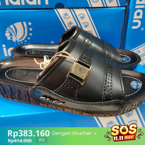 [Mall] Sandal Selop Pria Indian 337 Hitam Bahan Kulit Sandal Cowok Dewasa Elegan Keren Original
