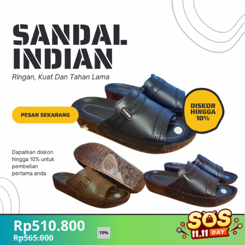 [Star] SANDAL KULIT PRIA INDIAN 337 / 437 / 445 HITAM COKLAT HIJAU MERAH ORIGINAL