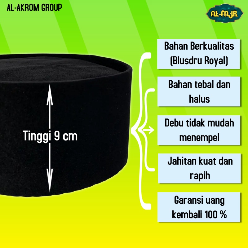 Peci Songkok Pria Hitam Polos PREMIUM Bahan Royal Halus dan Lembut Murah Untuk Anak dan Dewasa