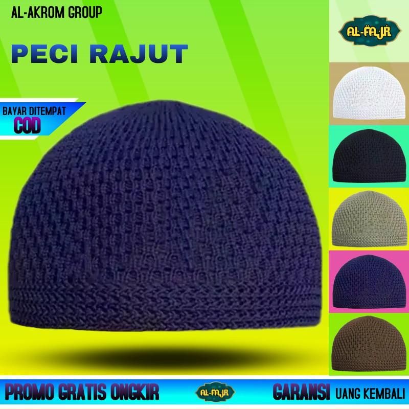 Peci Songkok Pria Peci Kopiah Haji Rajut Biru Navy / Songkok Rajut Nanas Polos