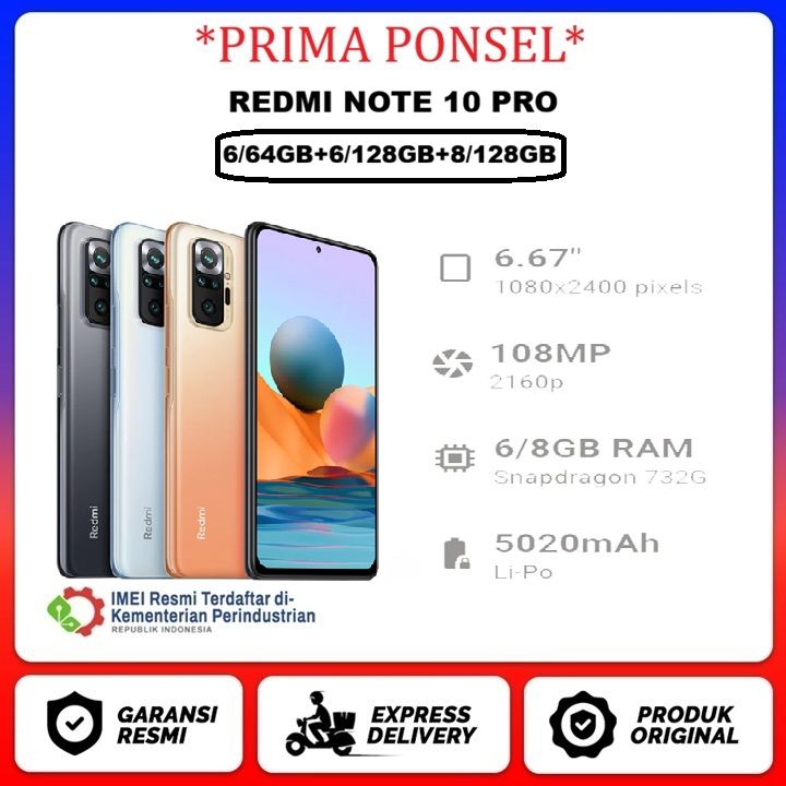 Xiaomi Redmi Note 10 Pro 8/128GB AMOLED 6.67" 108MP Quad Kamera Snapdragon 732G Baterai 5020mAh