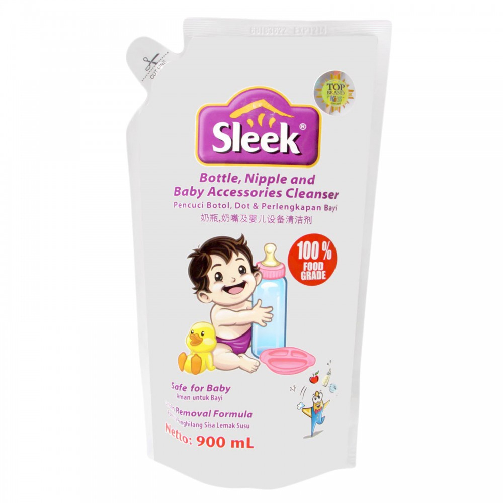 SLEEK BABY BOTTLE & NIPPLE CLEANSER POUCH 900ML Sabun Cuci Botol Bayi