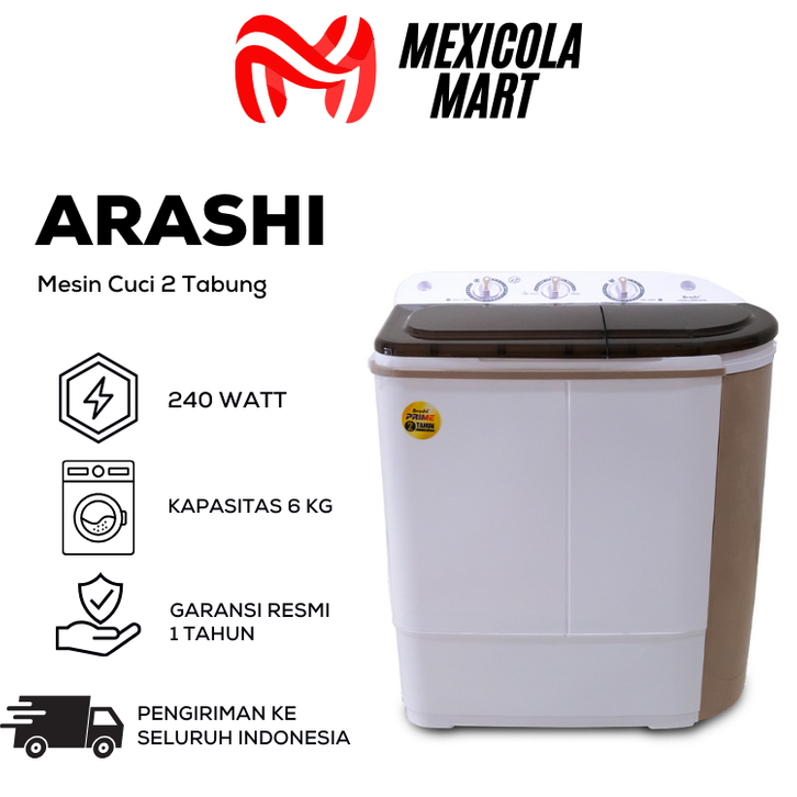 Mesin Cuci 2 Tabung Arashi AWM 602B Kapasitas 6KG Low Watt