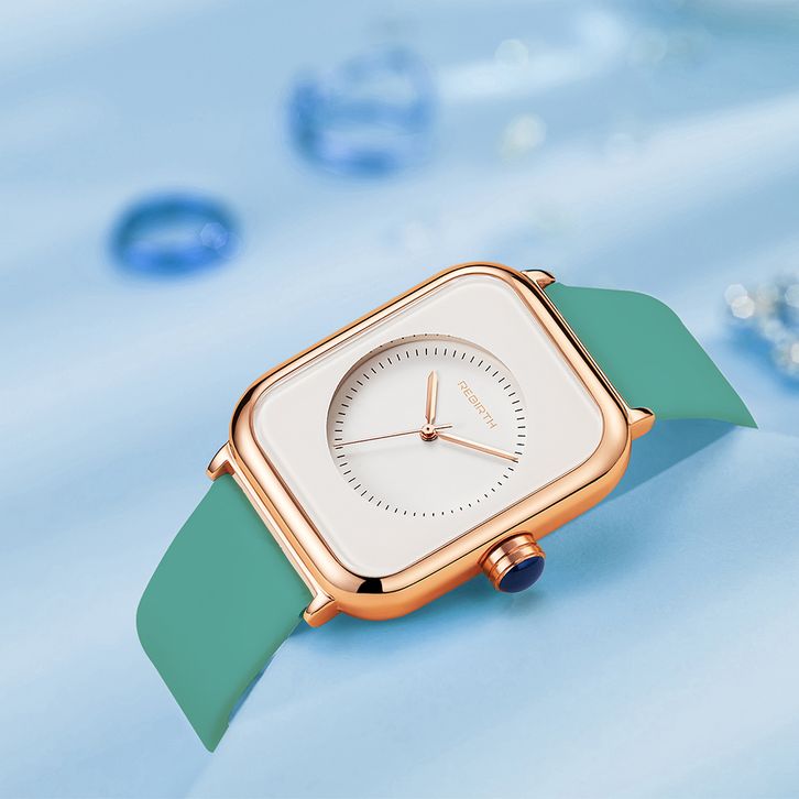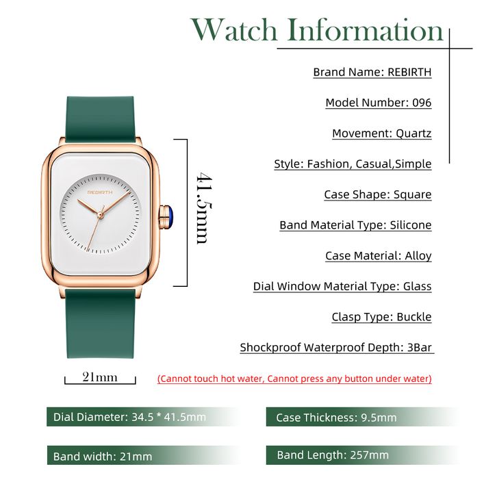 Rebirth Jam Tangan Wanita Persegi Panjang Jam Kelas Atas Fashion Elegan Tali Silikon Jam Cewe RE096