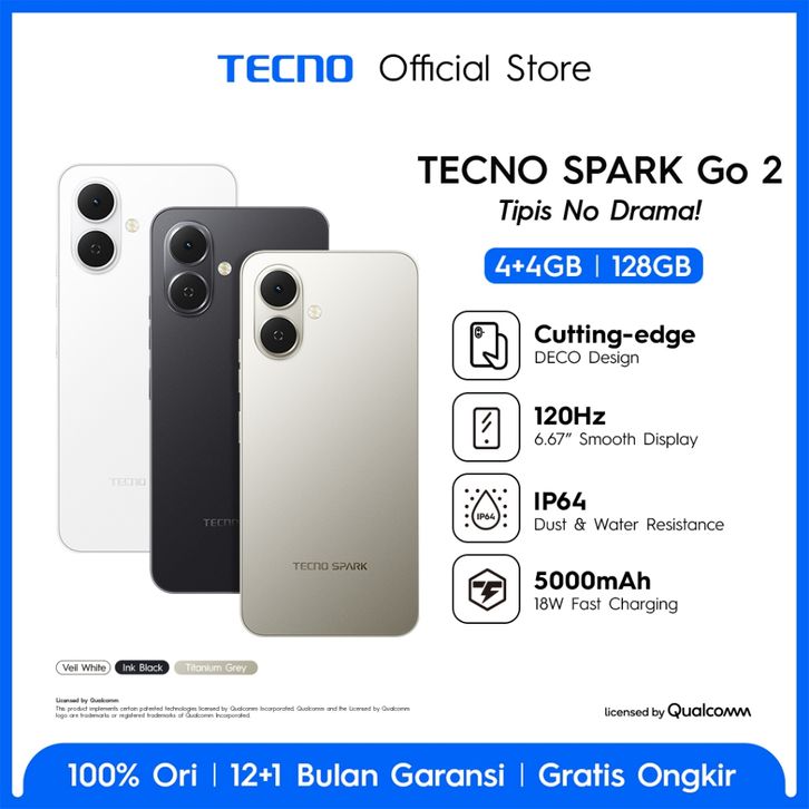 [MALL] HANDPHONE ANDROID MURAH SPEK GAHAR TECNO SPARK GO 2 4GB+4GB RAM 128GB ROM HP GO EDITION LAYAR 6.67" HD+ ORIGINAL