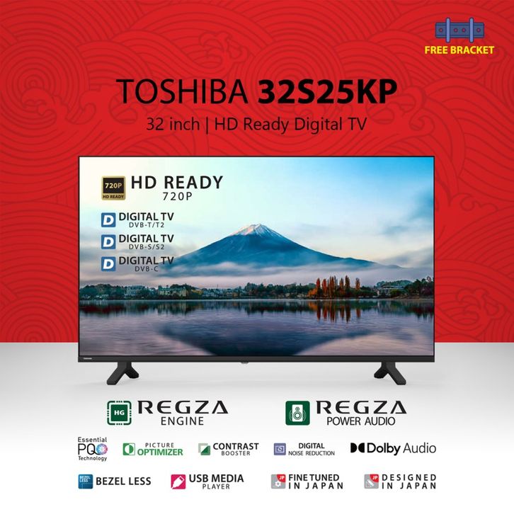 GARANSI RESMI DIGITAL LED TV TOSHIBA 32 INCH HD32S25KP FREE ANTENA DIGITAL
