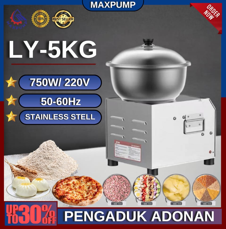 MAXPUMP LY-5KG Mesin Pengaduk Adonan Elektrik Pengaduk Tepung Otomatis Dough Mixer