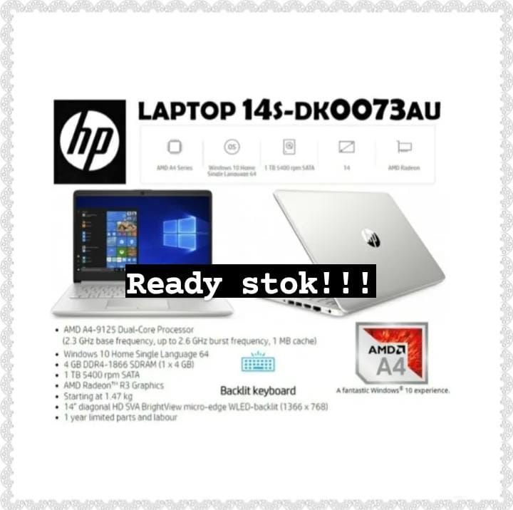 BIG SALE !!!! Laptop HP 14S-DK0073AU AMD A4-9125 | VGA R3 | 4GB | 1TB |