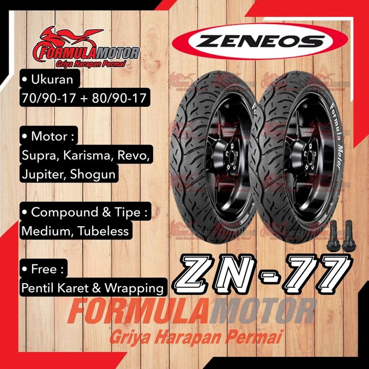 70/90-17 + 80/90-17 Ban Zeneos ZN77 ZN-77 Tubeless - Sepasang Ban Supra / Karisma / Revo / Jupiter / Shogun
