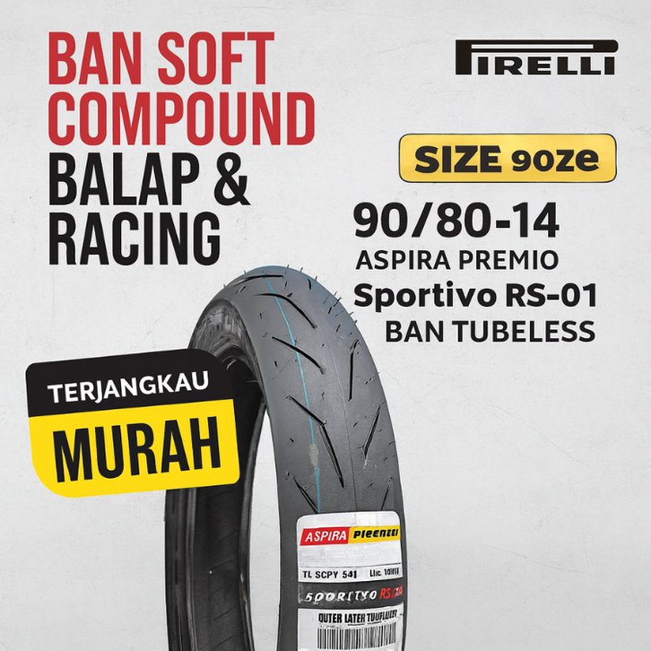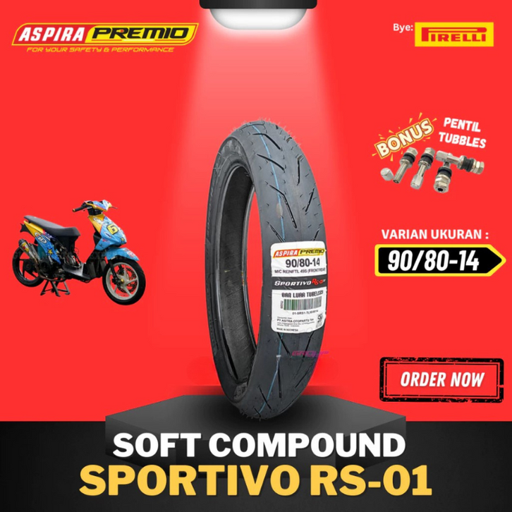 BAN ASPIRA PREMIO SPORTIVO RS01 RING 14 90/80-14 TUBELESS SOFT COMPOUND BAN MOTOR BALAP RACING DRC II MURAH BEST SELLER