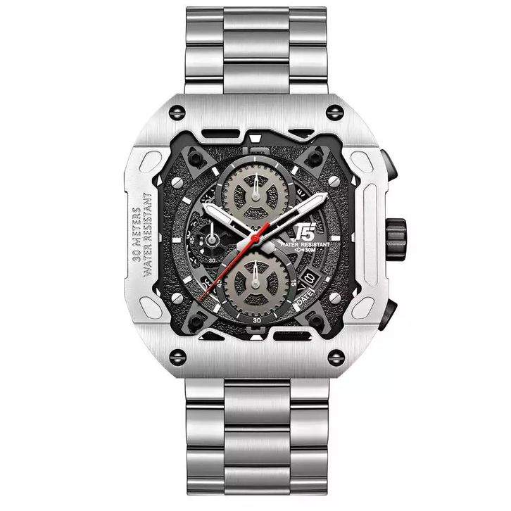 Jam Tangan Pria T5 H 4105 SILVER BLACK STAINLESS STEEL Original Chronograph Bergaransi-Free tin box