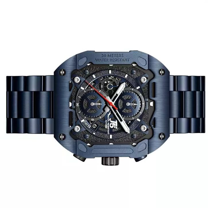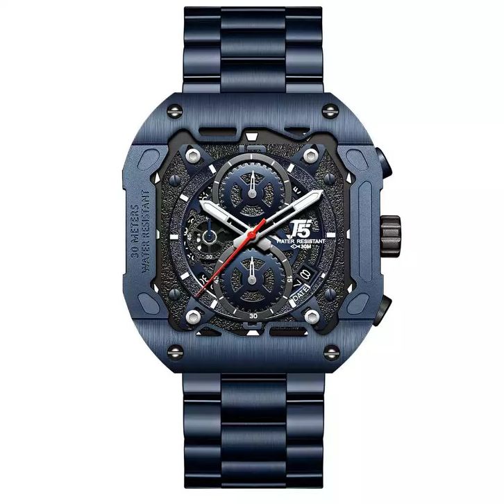 Jam Tangan Pria T5 H 4105 FULL NAVY STAINLESS STEEL Original Chronograph Bergaransi-Free tin box