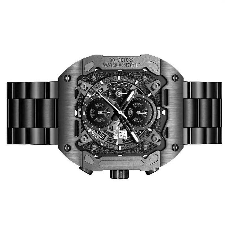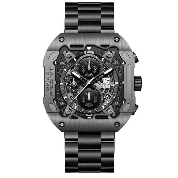 Jam Tangan Pria T5 H 4105 FULL BLACK STAINLESS STEEL Original Chronograph Bergaransi-Free tin box